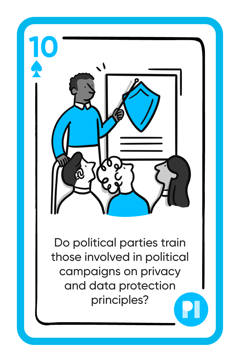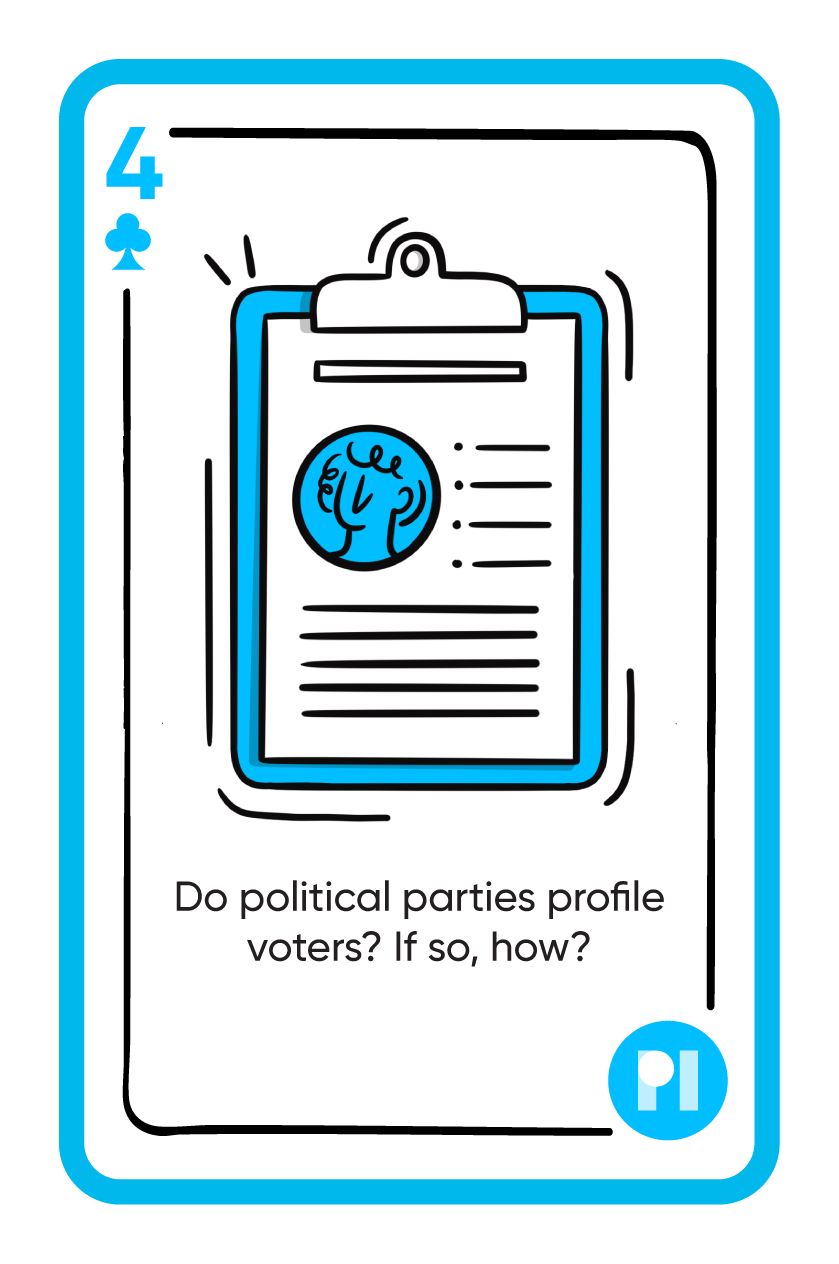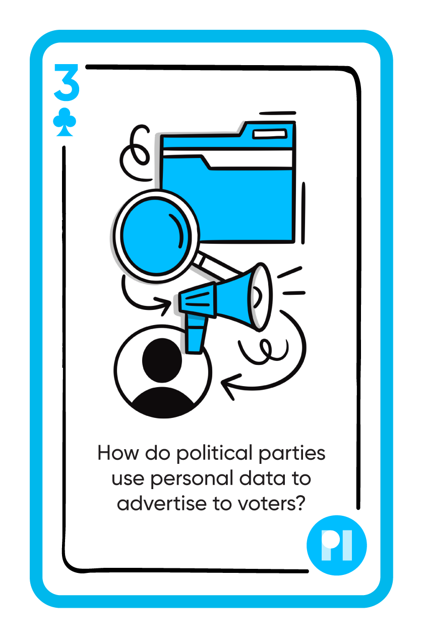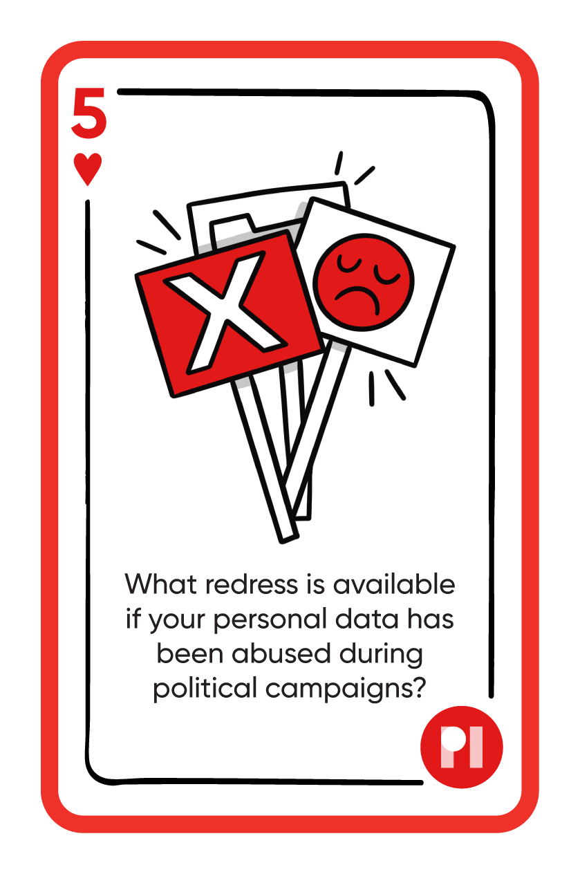 A selection of cards designed and illustrated for a deck used in Privacy International's campaign that asked people and companies to question how data and tech were used during elections